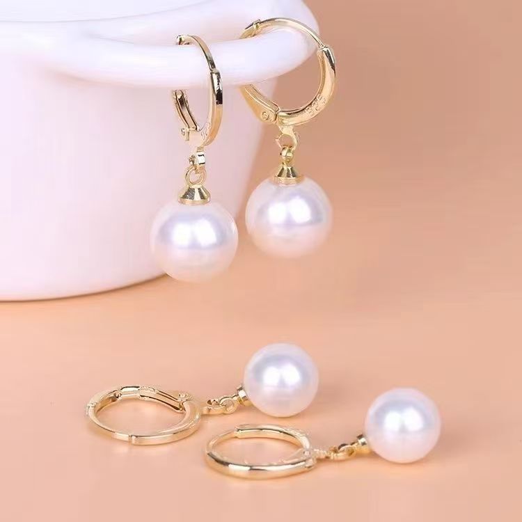 - 12mm Gold Pearl Stud Earrings