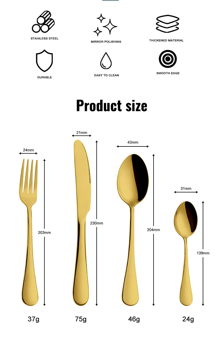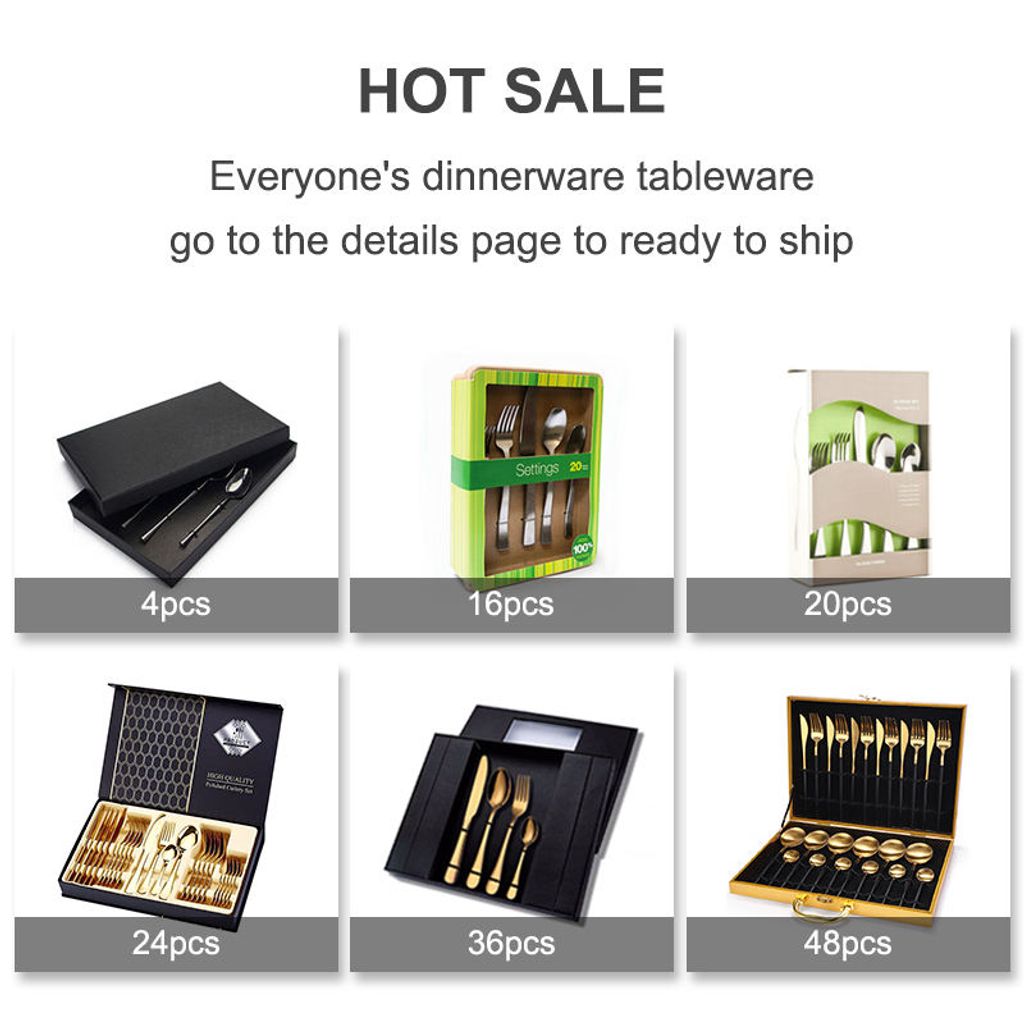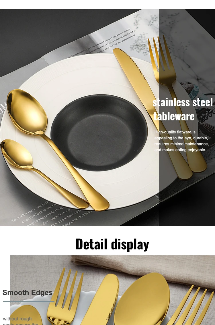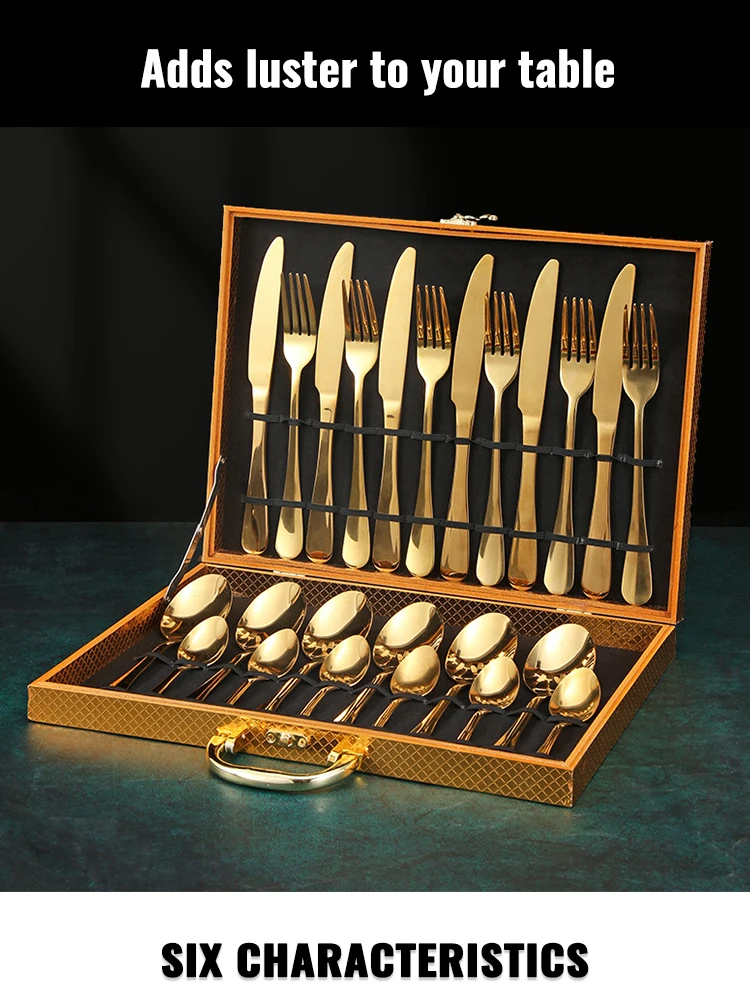 Custom Logo Gold Spoon and Fork Flatware Set Stainless Steel Cutlery Set With Box 24pcs Luxury Gift Gold Cutlery Set for Wedding