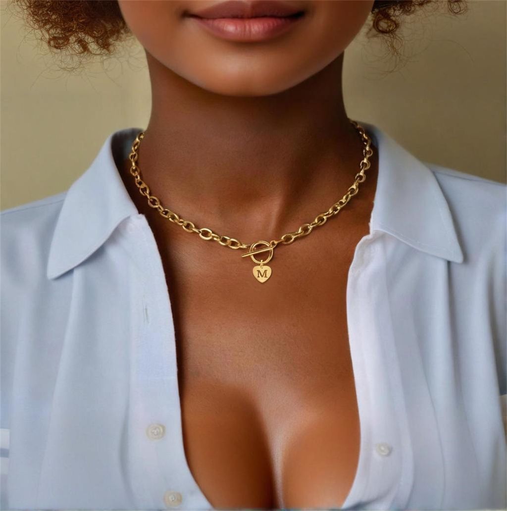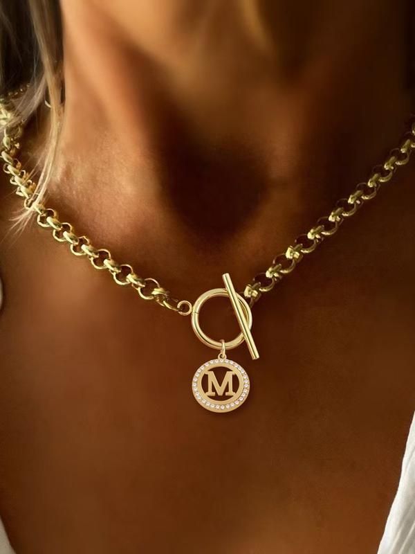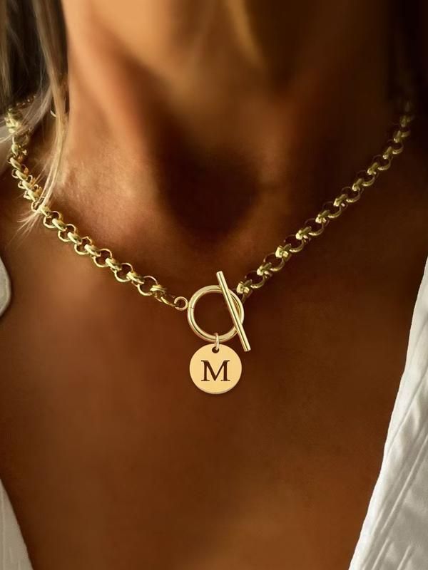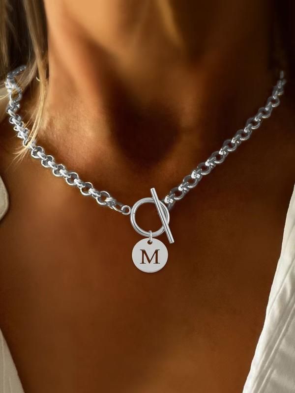 Heart Hollow Out Initial Pendant Necklace, Stainless Steel Chain Necklace with OT Buckle, Elegant Fashion Jewelry for Party, Daily Decor, Trendy All-match & Exquisite Jewelry for Birthday Gift