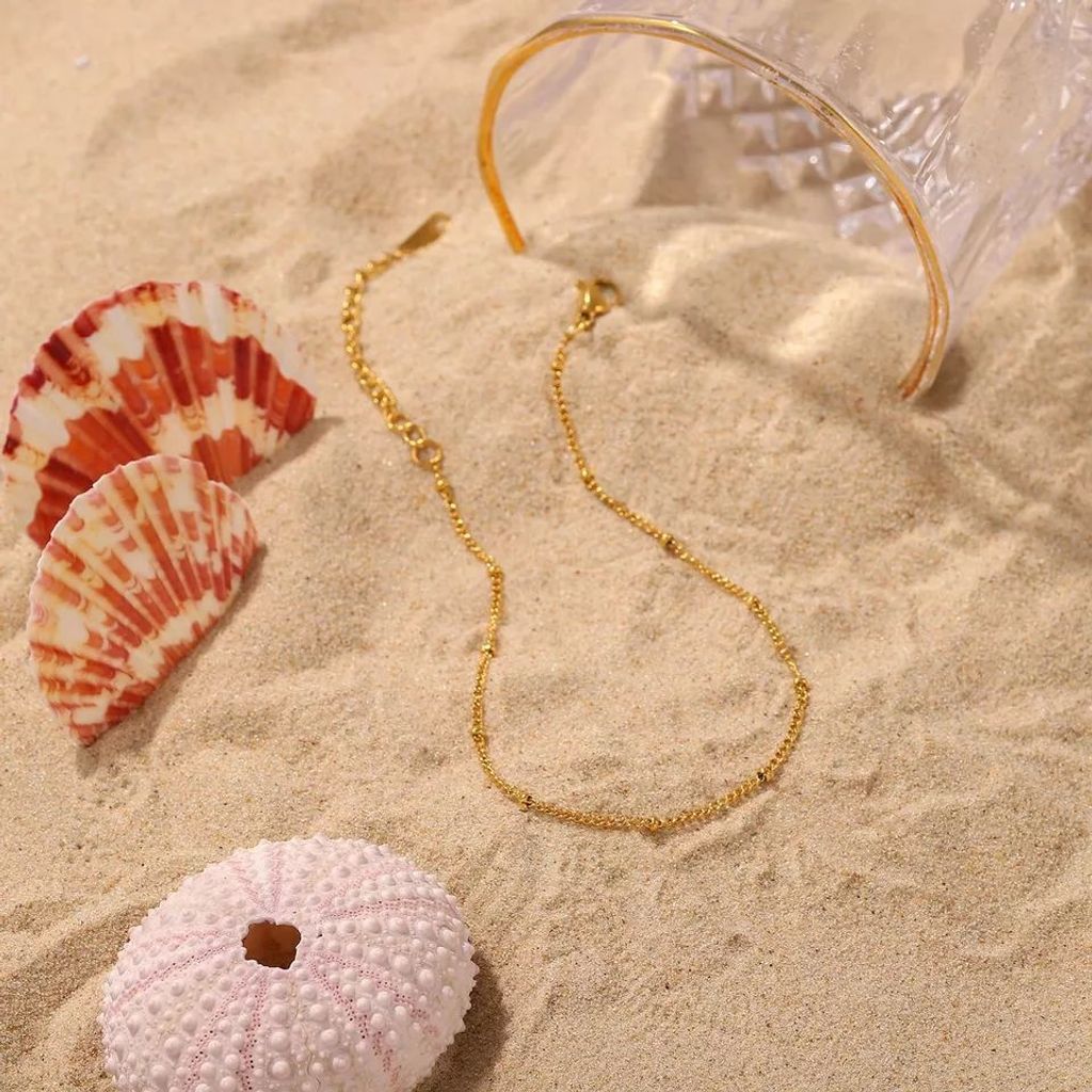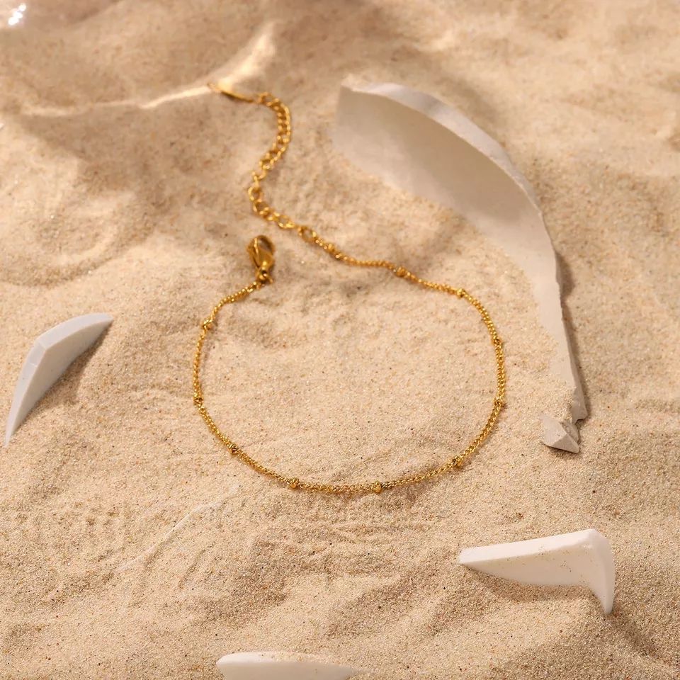 Matte-Finish 18K Gold-Plated Stainless Steel Satellite Chain Women's Summer Beach Anklet