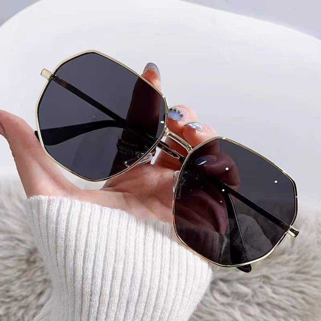 Metal polygonal anti-ultraviolet sunglasses, suitable for both men and women, ideal for driving, stylish and versatile, perfect for traveling, taking photos, and sun protection